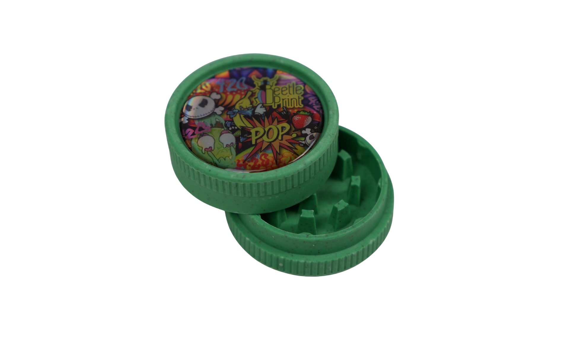 Este grinder biodegradable de Beetle Print combina diseño gráfico llamativo y funcionalidad diaria en un formato sostenible. Fabricado con material bio-based, está pensado para quienes buscan accesorios con personalidad sin renunciar al respeto por el entorno.